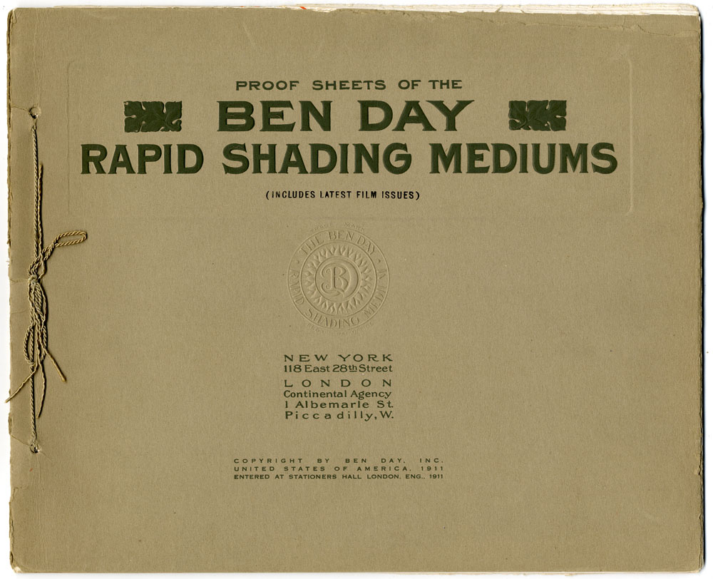 Michael Twyman says that Penrose licensed the use of Ben Day machines from Day’s own company, though I suspect this was only until Day’s patents ran out. Evidently Penrose saw a money-making opportunity in marketing—possibly undercutting—the world’s number one in the shading medium business. Clearly the arrival of cheaper competition can be taken as a sign that the Ben Day company was enjoying a high degree of success. I know of at least one other competitor, and Twyman discusses others. I might discuss these in a future post.