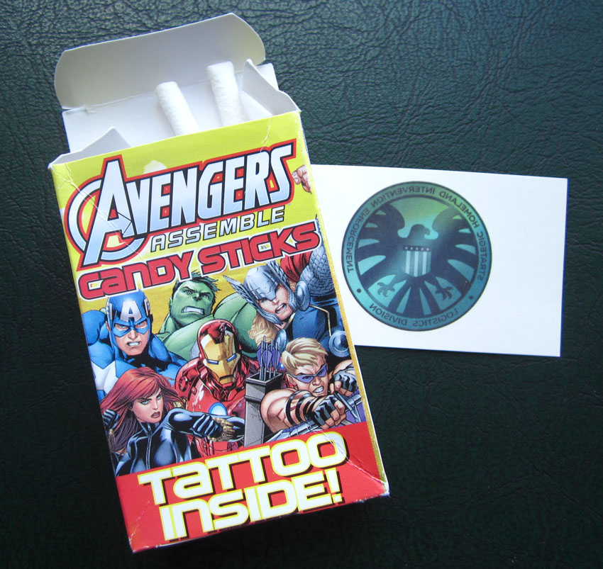 Two words of warning: generally, I’m very fond of candy sticks (or “sweet cigarettes” as they were known in a more guilty age) but these were, disappointingly, quite disgusting. Secondly, I wouldn’t try putting the tattoo on your laptop lid. Didn’t work at all well. Stick to skin use, as per instructions.