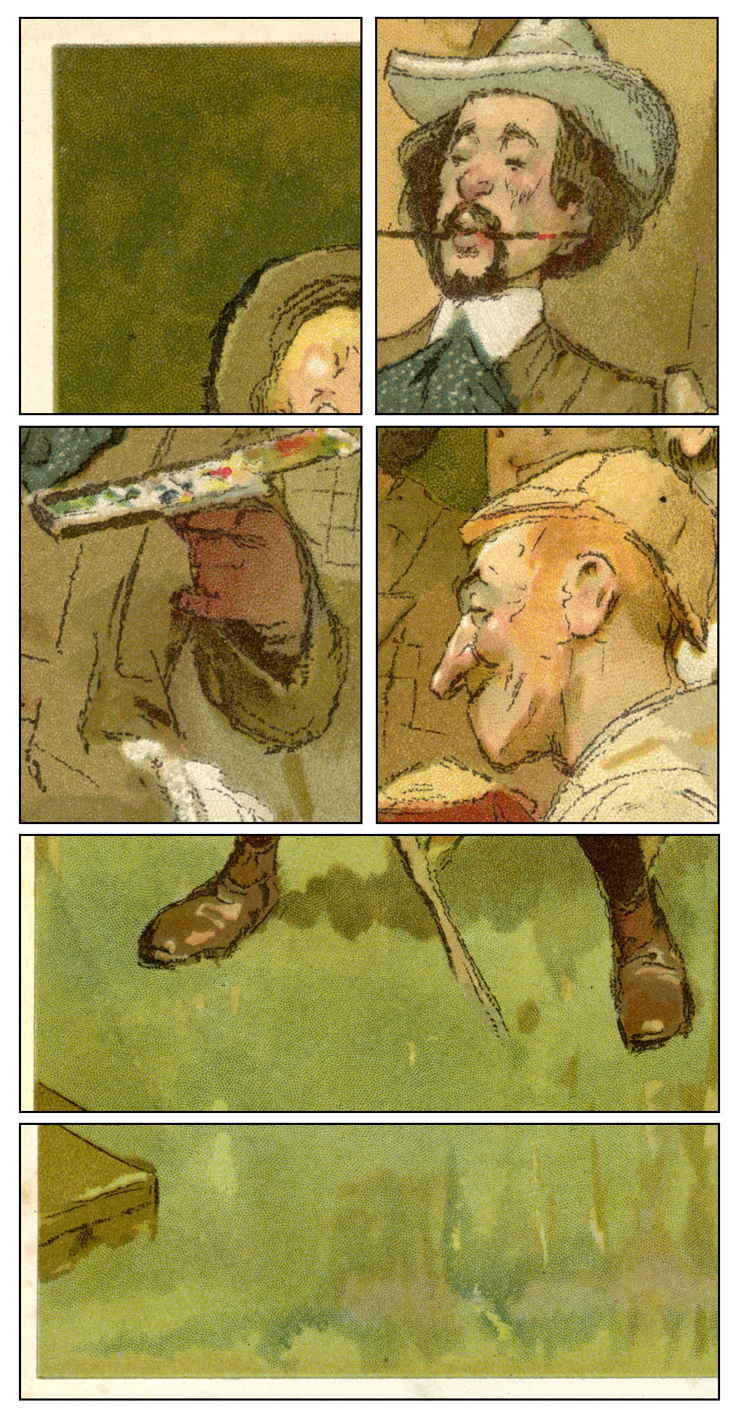Having recently read Michael Twyman’s excellent History of Chromolithography, I cannot resist re-presenting from that book one final example of Ben Day dots in action. Again, I have left the original caption intact.