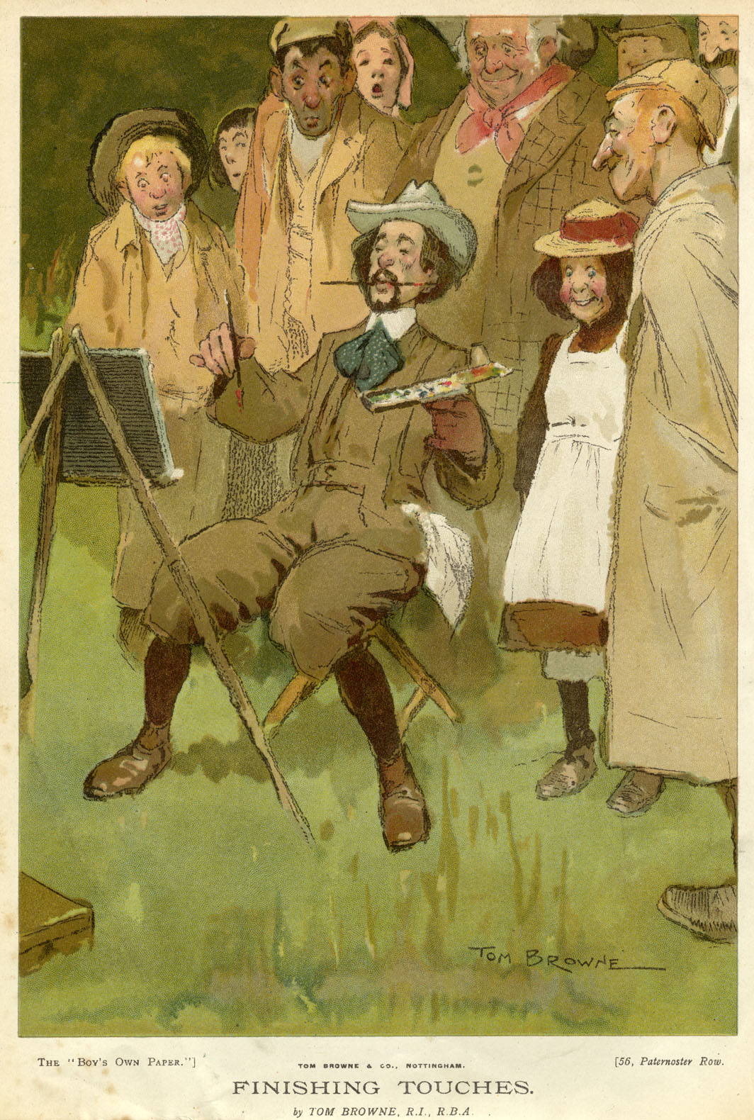 I actually was hoping to find information on using a reproduction of one of Tom Browne’s lithographs in a 1902 Boy’s Own Paper. I design greeting cards and would like to use Finishing Touches on a card. Do you know anything about the copyright?