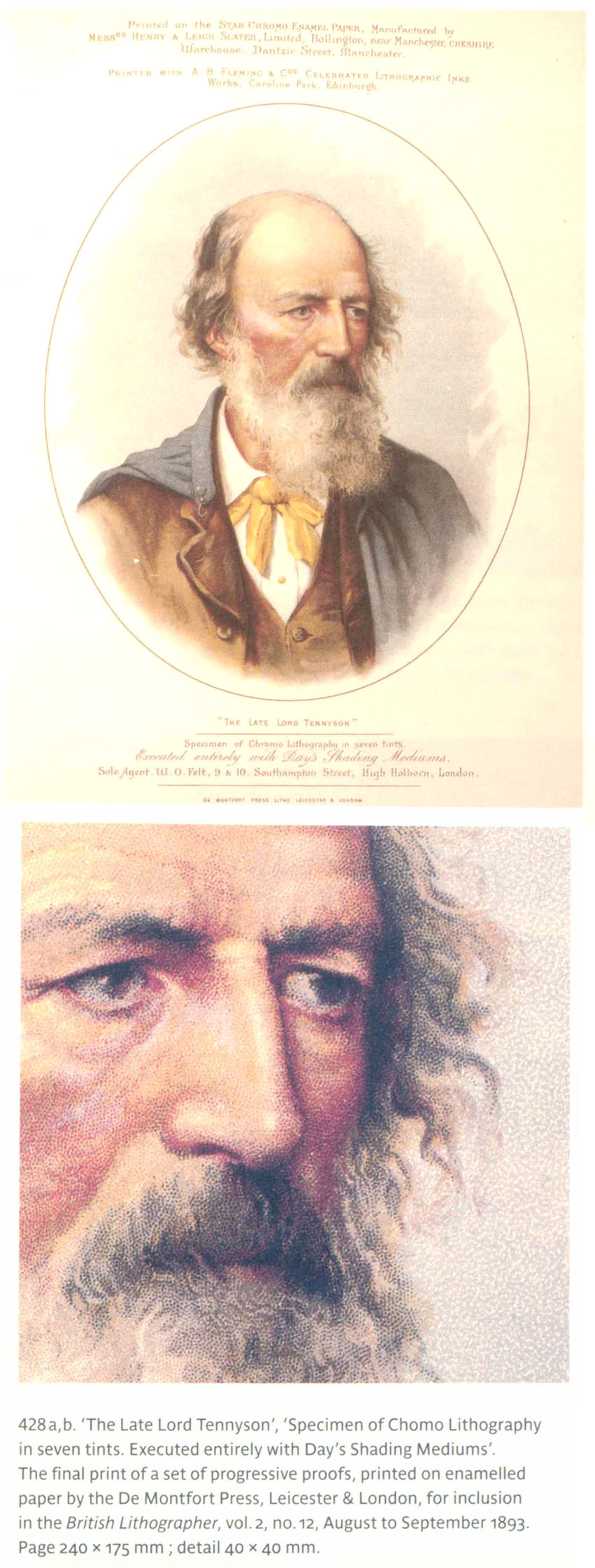 Commercial lithographic printing from stone as well as zinc did not really die out until the 1940s, at least in Britain—though its heyday is usually quoted as the 1870s to 1920s. Shading mediums, including Ben Day’s, were in constant use in commercial lithography from the early 1880s for 50 or 60 years.