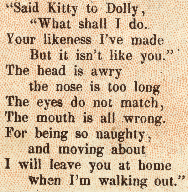 So, to sum up, Dolly’s Portrait is not a satisfactory example of an actual comic strip, though with its text on the same page and a partially sequential graphic narrative, it is perhaps our closest yet.