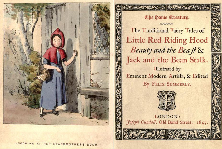 Sir Henry Cole, first director of the Victoria & Albert Museum, was the pioneering publisher of these Home Treasury editions under the pseudonym Felix Summerly. Printing was by Charles Whittingham at the famed Chiswick Press. The edition below was illustrated by T. Webster. It cost two shillings and sixpence coloured, one shilling in black & white. A shilling, let us remember, was in those days 12 pennies. This book had four coloured illustrations for a cost of 30 pennies.