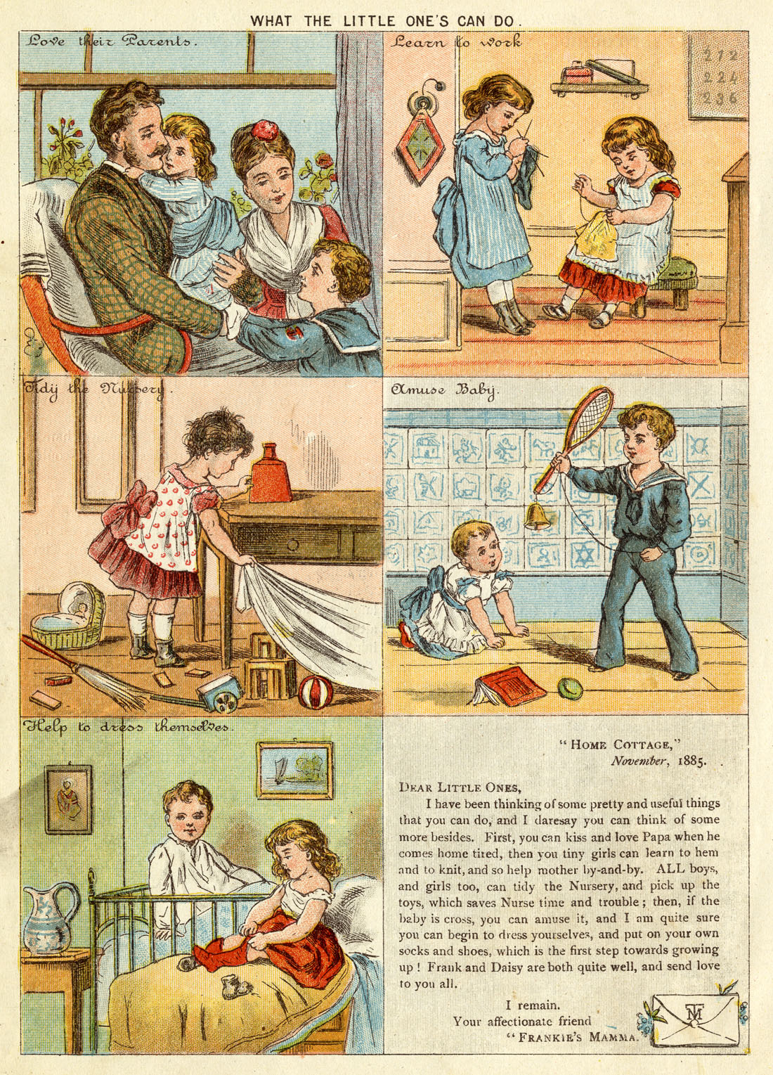 Eventually we see that the pictures are linked by the suggestions made to the Little Ones in the letter from Frankie’s Mamma, though placing this at the end of the sequence seems perverse to me.
