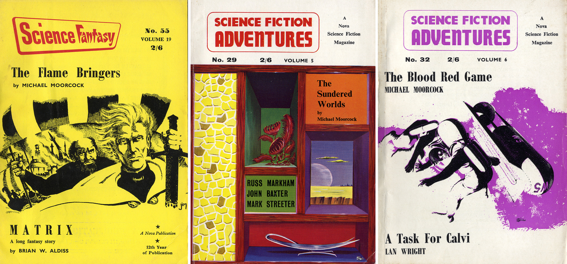 His novella in Science Fantasy‘s companion title Science Fiction Adventures no.32 (May 1963), quoted in OED:1.b., was called The Blood Red Game; the sequel to The Sundered Worlds in no. 29 (Nov 1962). The two novellas have subsequently been published together several times under one or other name (generally to some extent rewritten).