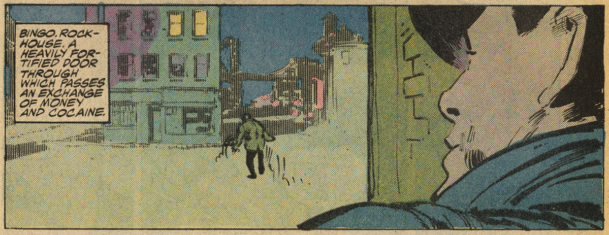 The premise is high concept. A decorated veteran and his family are shot – gunned down by mobsters in broad daylight in Central Park. The husband survives and becomes a vigilante. Rather than merely seeking retribution against those who murdered his wife and children, he turns a blood feud against organized crime into a war on criminality. His family was ‘killed by criminals, and so I hunt criminals’ [footnote 1]. Expert in all forms of combat, he is shrewd, motivated, and impervious to pain. He operates far beyond the confines of morality and the law. Over time, he racks up a body count in the tens of thousands. His vendetta takes him across the globe and even into outer space. It pits one man’s natural law against an entire social order. But ‘the core of his mission lies in the dark, claustrophobic concrete canyons’ [2] of his place of birth, New York City.