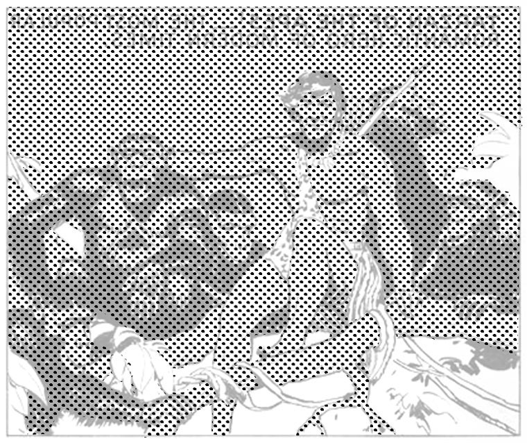 All the variations in dot size and dot pattern, and the use of lines, were created by the Ben Day operators. We have seen how they did it—using varied pressure when applying the screen, and multiple applications of the screen in a variety of combinations.