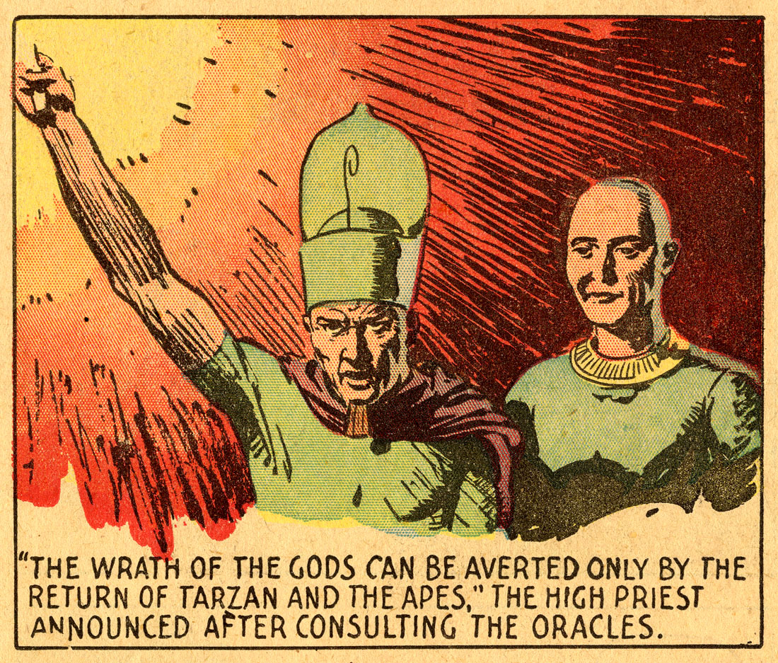 The original Tarzan dailies had panels with typeset text underneath. This is one of Foster’s dailies (most images can be clicked or tapped for full-size versions in a new window—use your browser’s back button or arrow to return here):
