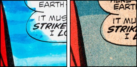 On the other hand, you have probably seen parts of old school comic books where insufficient ink or low pressure in the printing press have created very light tints, or even complete gaps in the colour images. Even ‘solid colour’ tends to contain patchy white areas due to fast printing and rough paper.