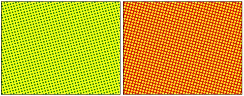 On smooth and/or glossy paper, the printing of tiny dots at 175 or 200 or more lines-per-inch is possible. These dots can effectively disappear, achieving the intended illusion. In the old-school comics, printed on newsprint with 60 lines-per-inch dots, only yellow dots could reliably do so. At a normal reading distance, old-school cyan and magenta dots often remain clearly visible…